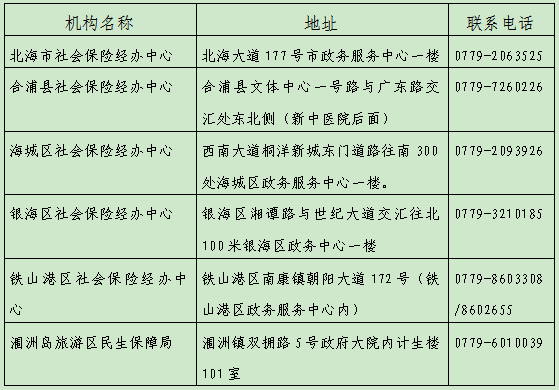 四、北海市各级社会保险经办机构地址及联系电话