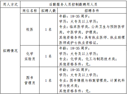 为满足学校后勤服务用人的需要,拟向社会公开招聘后勤服务人员控制数工作人员3名。