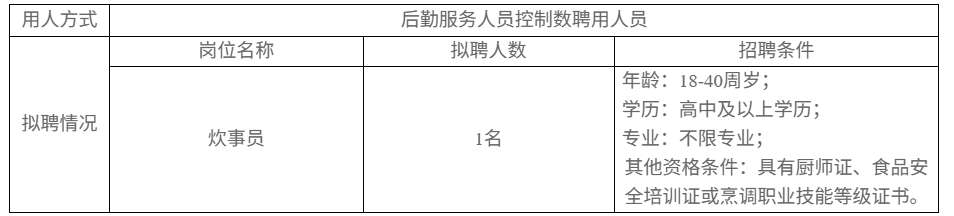 为满足幼儿园后勤服务用人的需要,拟向社会公开招聘后勤服务人员控制数工作人员1名。