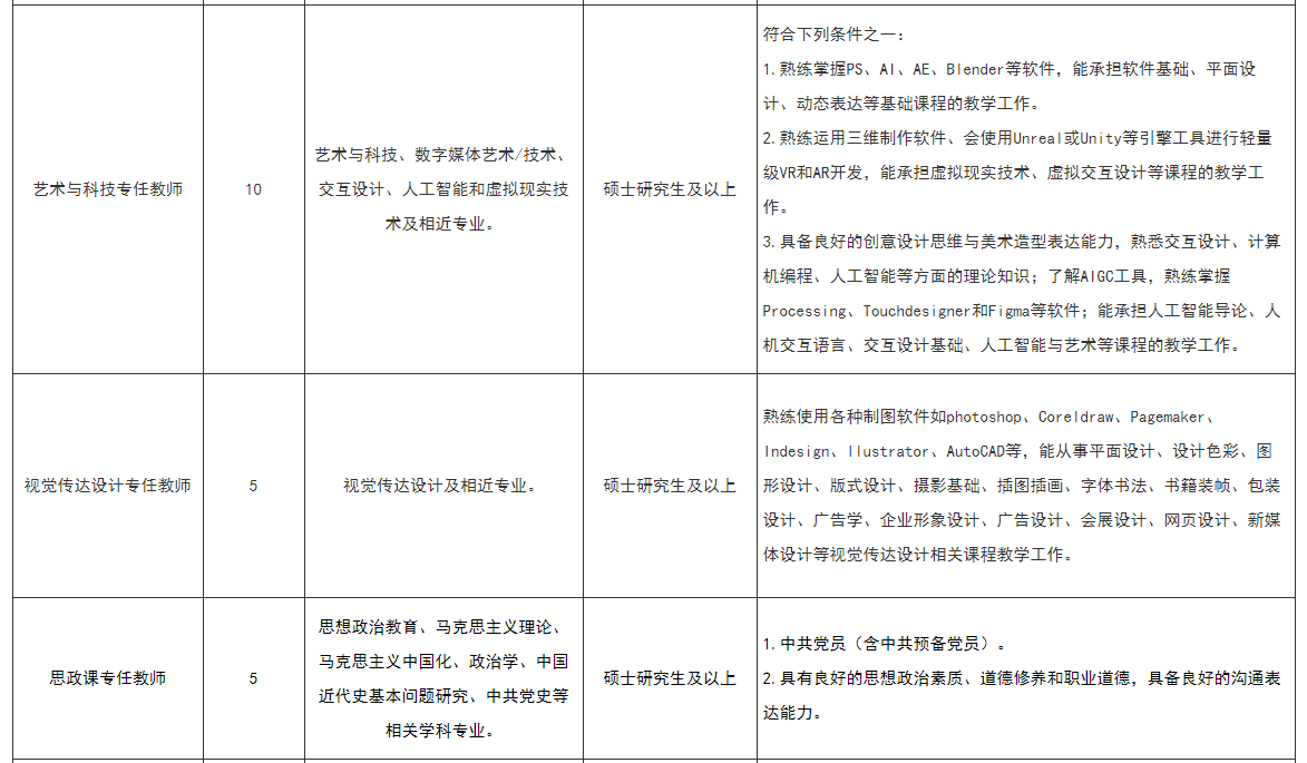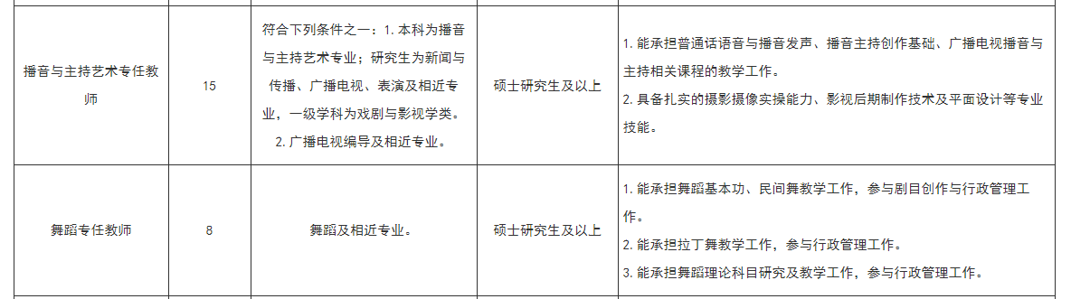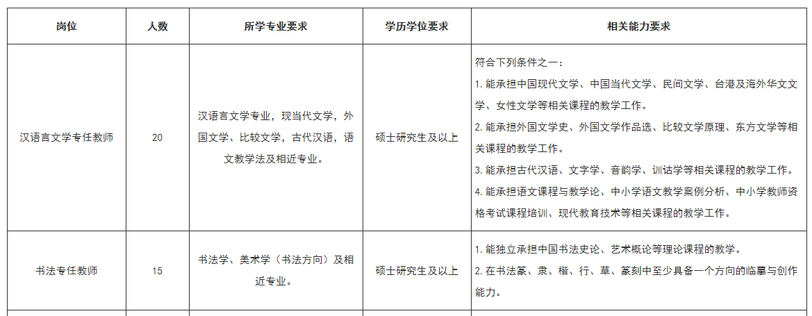 根据学校事业发展需要,拟招聘以下相关专业教师。具体招聘岗位及要求如下: