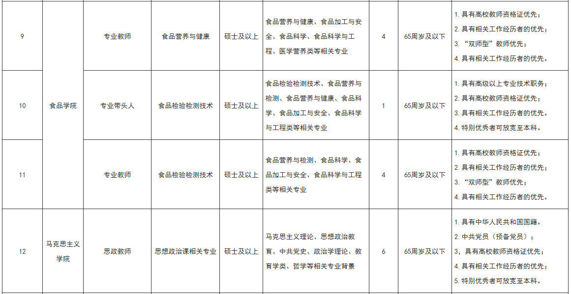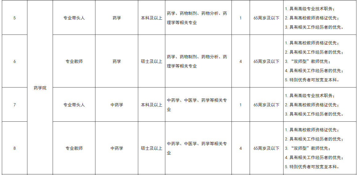 现面向社会公开招聘专业负责人及骨干教师。我们诚邀有志于教育事业的优秀人才加入我们的行列,共同为培养食品药品与大健康产业高素质技术技能人才贡献力量。学院将提供广阔的发展空间和优厚的薪酬待遇,期待与您携手共创美好未来。招聘如下: