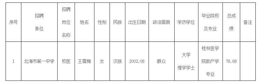 北海市第一中学2025年公开招聘后勤服务人员控制数拟聘用名单公示