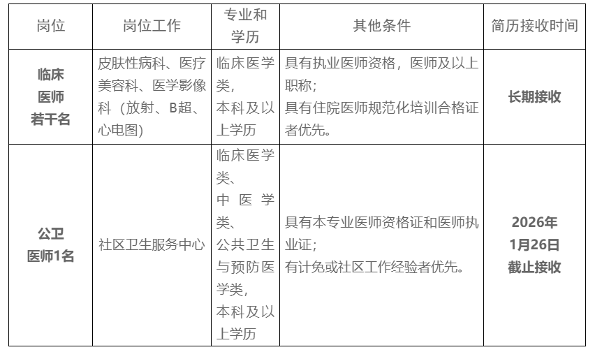 4.医师岗位招聘长期有效,其他岗位招满为止。