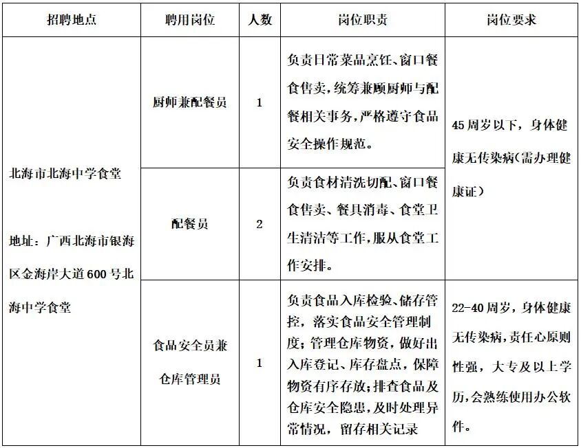 3.工作认真负责,能吃苦耐劳,服从食堂日常管理与岗位调配安排;